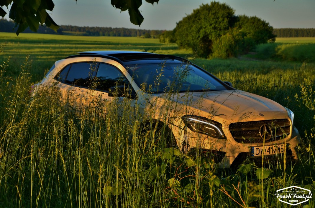 Idąc za ciosem i korzystając z przychylności Salonu Mirosław Wróbel w Przylepie, wypożyczyłem na test kolejnego Mercedesa. Tym razem całkiem fresh, mały, zgrabny zapełniający nowy segment pomniejszonych SUV (crossover) model GLA. „Przyczajony tygrys, ukryty smok” pomyślałem patrząc na zaparkowane obok salonu auto. Wygląd samochodu rozbudził moją wyobraźnię, jednak opiekun szybko rozwiał nadzieje na zabawę. „Fajny nie?” powiedział, „tak wygląda” odparłem, „jaki silnik?” padło z moich ust zapytanie. I tutaj w sumie mógłbym zakończyć ten pełen emocji wstęp, no ale jedziemy dalej…