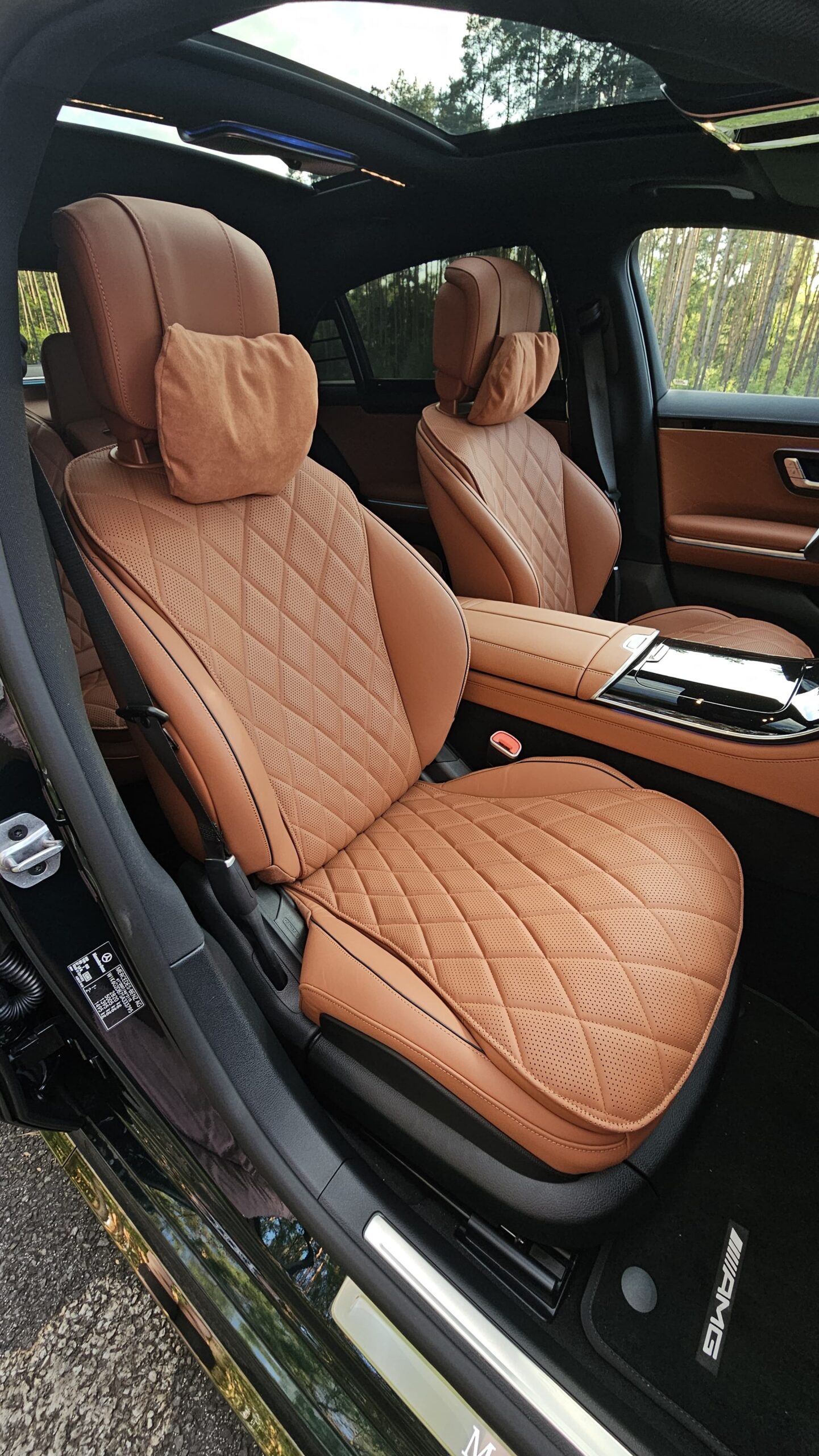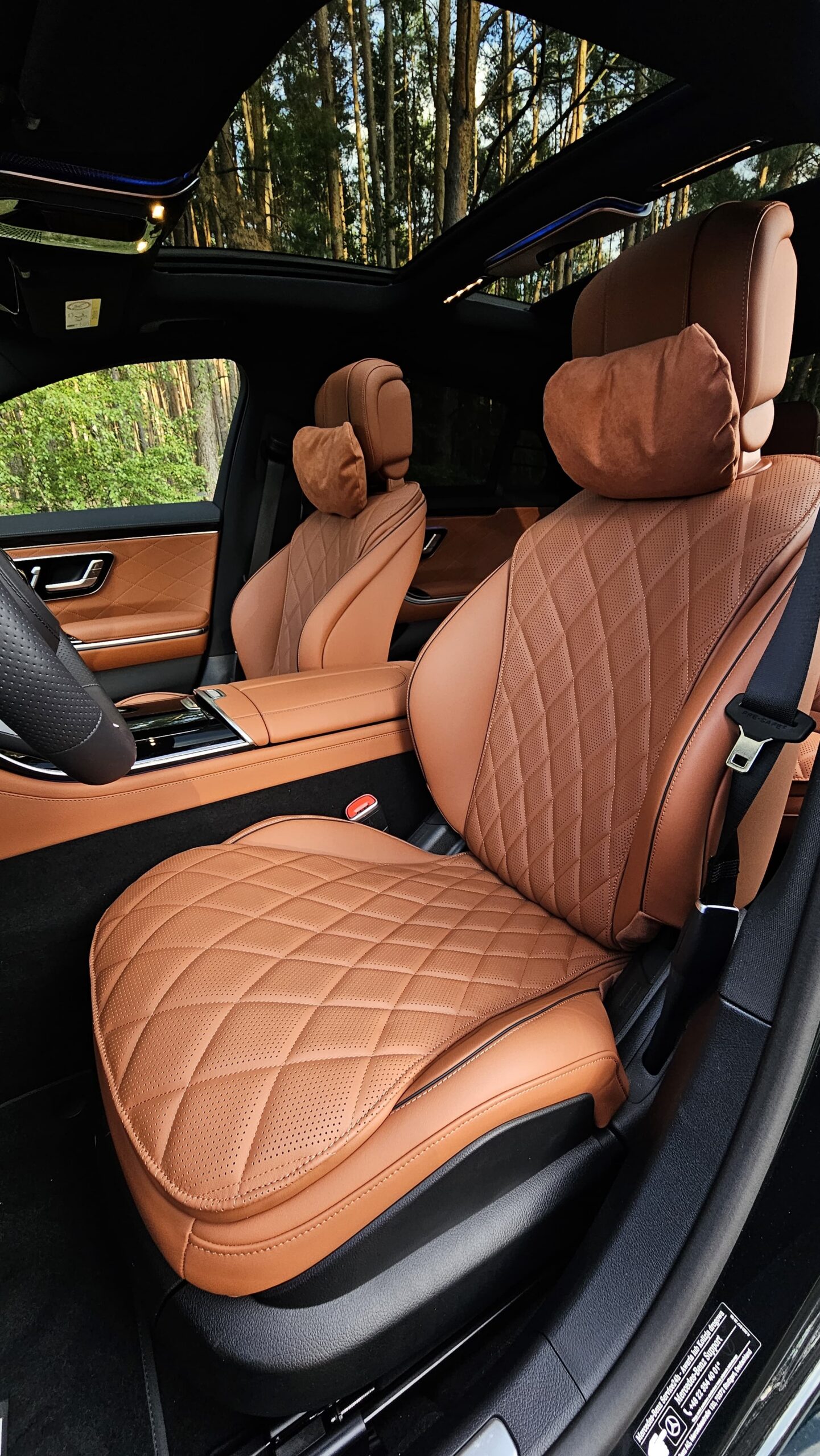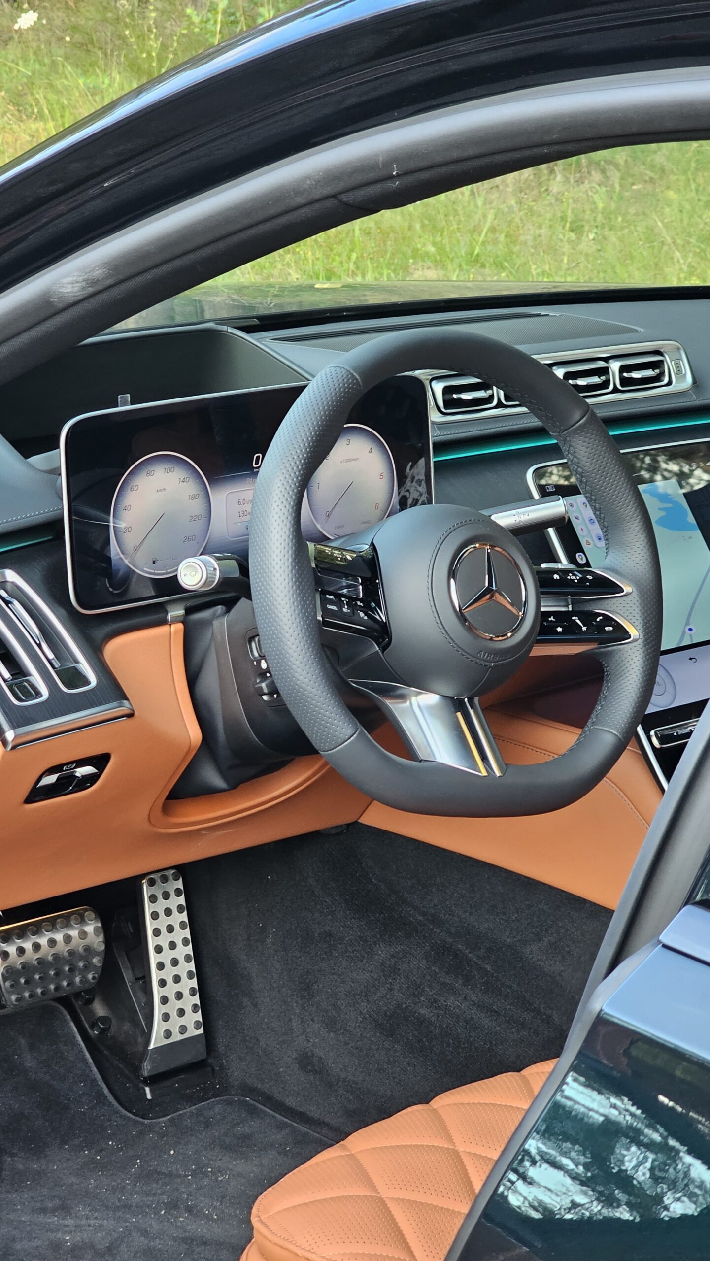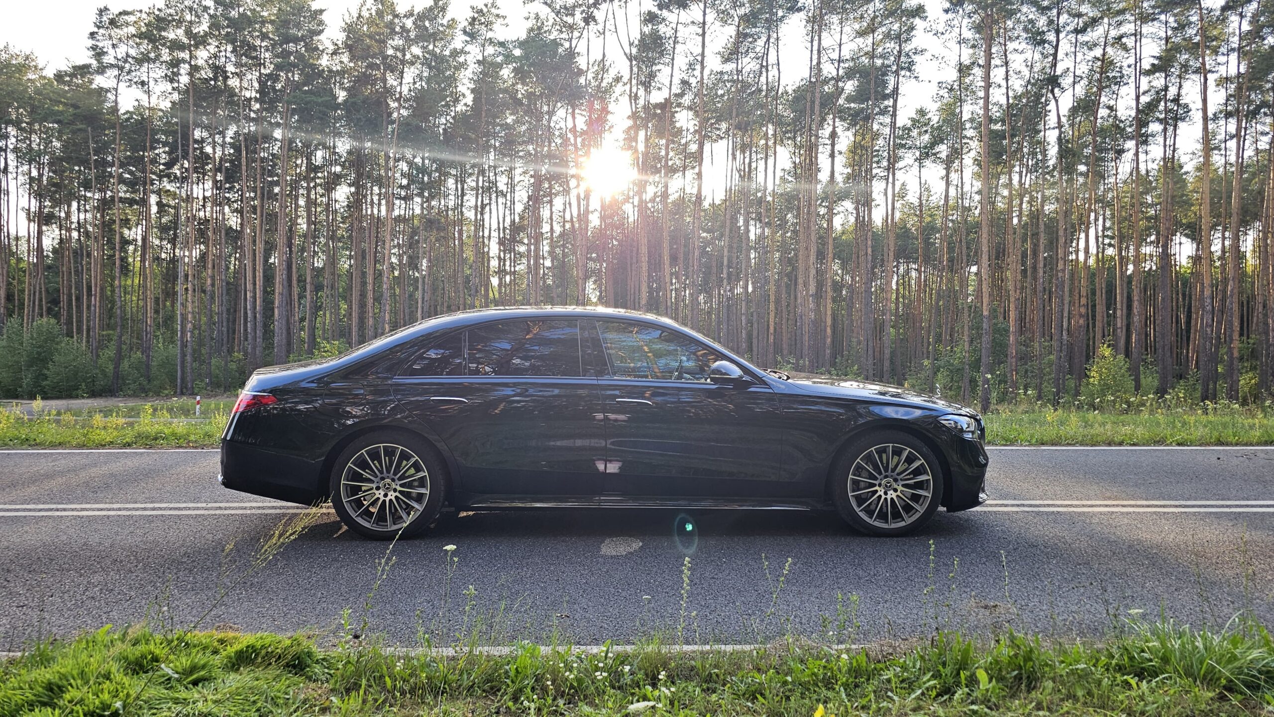 Ciemnozielony lakier, brązowa miękka skóra nappa, limuzyna, która wie czym jest spokój na drodze. Podszedłem do tego auta jak do rzadkiego trunku: wolno, z uwagą, by wyczuć niuanse. Nadwozie w odcieniu leśnej zieleni przykuwa spojrzenia bez krzykliwości; wnętrze w czekoladowej skórze zaprasza do otoczenia, które wygląda jak elegancki klub, a nie jak część maszyny. To niezawodna Sonnderklasse od Mercedesa, która w detalu pokazuje, że luksus nie musi krzyczeć — wystarczy szept.