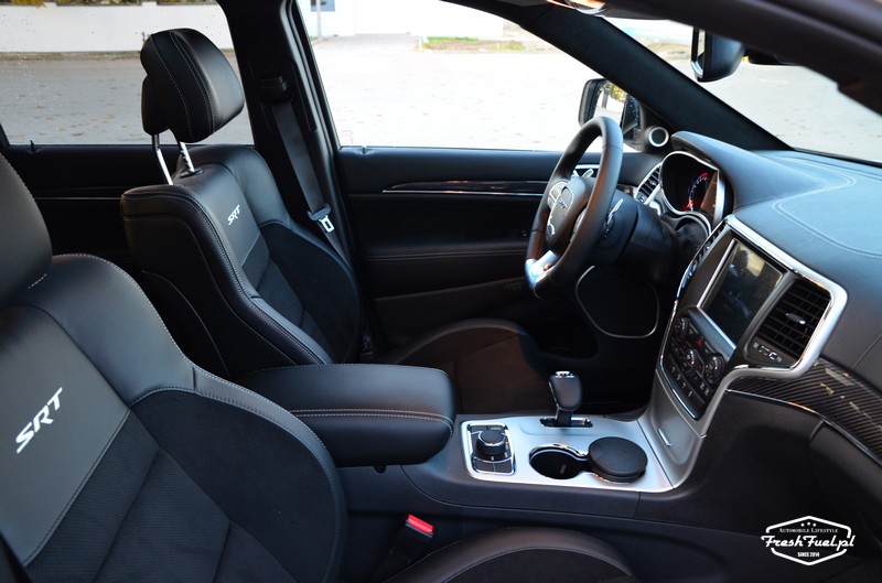Przy pierwszym kontakcie SRT wydaje się bardzo nerwowy, trzeba delikatnie naciskać gaz aby nie uderzyć w samochód ruszający przed nami spod czerwonego światła, trzeba wziąć poprawkę na opony szerokości 295 i wielkości 20”, chcące jechać koniecznie tam gdzie układa się koleina na asfalcie, trzeba w końcu zapoznać się z gabarytem samochodu, który nie jest przecież taki mały.